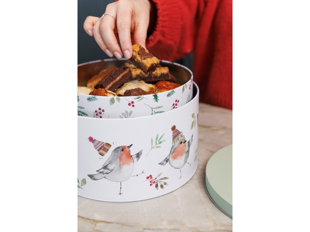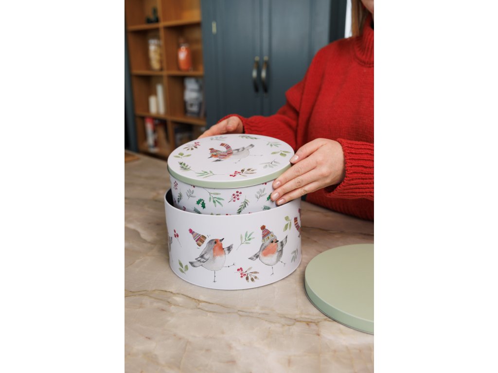 Elegantní sada dvou kulatých dóz s motivem zimního ptáčka přinese do kuchyně nejen praktické úložiště na dobroty, ale i příjemnou sezónní atmosféru. Jemné akvarelové ilustrace od britského studia Tipperleyhill dodávají dózám kouzlo, které skvěle doplní vánoční pečení i běžné dny.