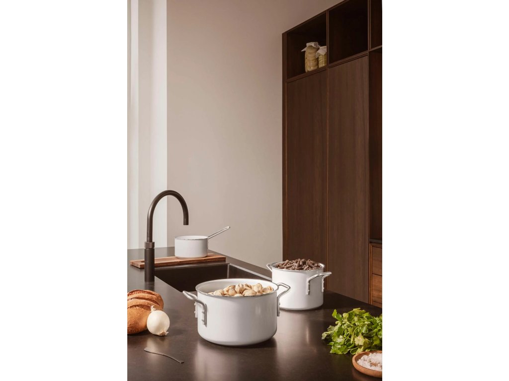 Díky samostatným poklicím lze nádobí efektivněji stohovat a skladovat. Skříňky zůstávají přehledné a nepřeplněné. Vy si pořizujete pouze to, co skutečně využijete – bez nadbytečných komponent.