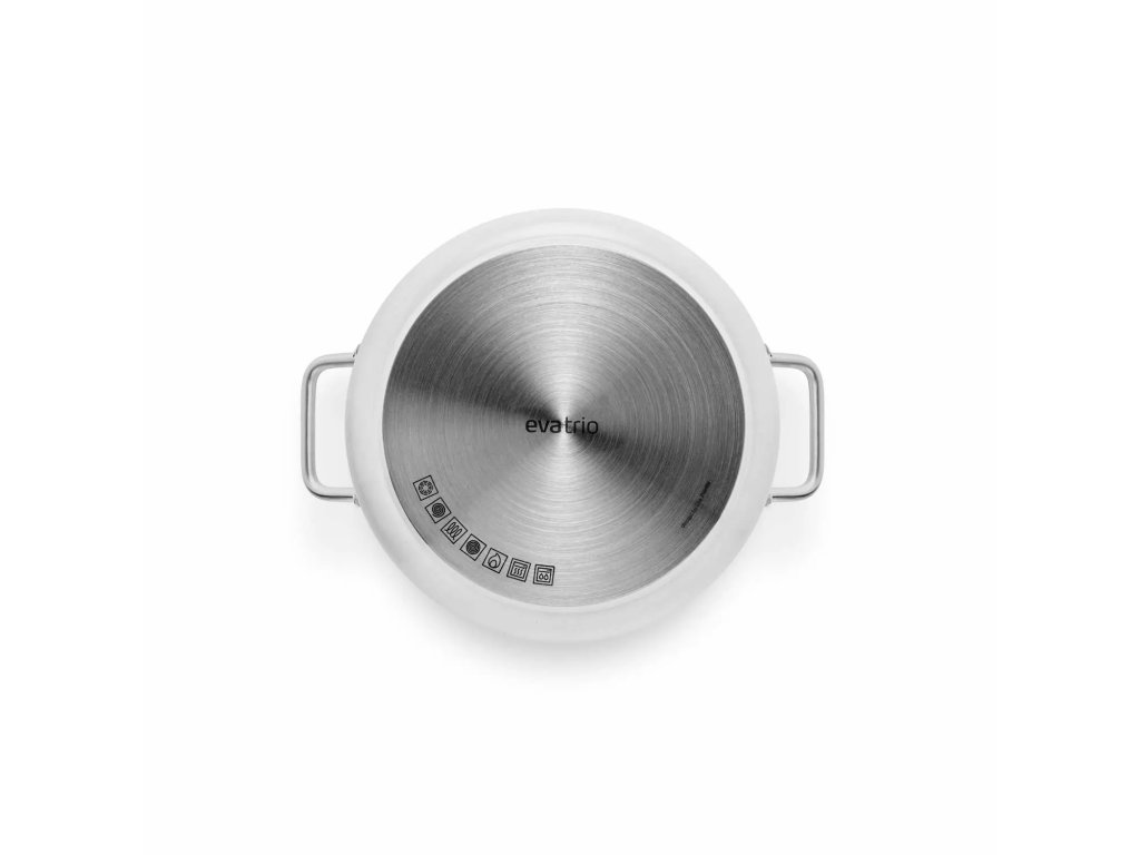 Eva Trio White Line 7 l je hrnec navržený pro větší projekty v kuchyni. Díky objemu sedm litrů nabízí dostatek prostoru pro rodinné polévky, vývary, luštěninové pokrmy, dlouhé pomalé dušení i přípravu celého kuřete. Přesto si zachovává příjemnou hmotnost a dobrou ovladatelnost.