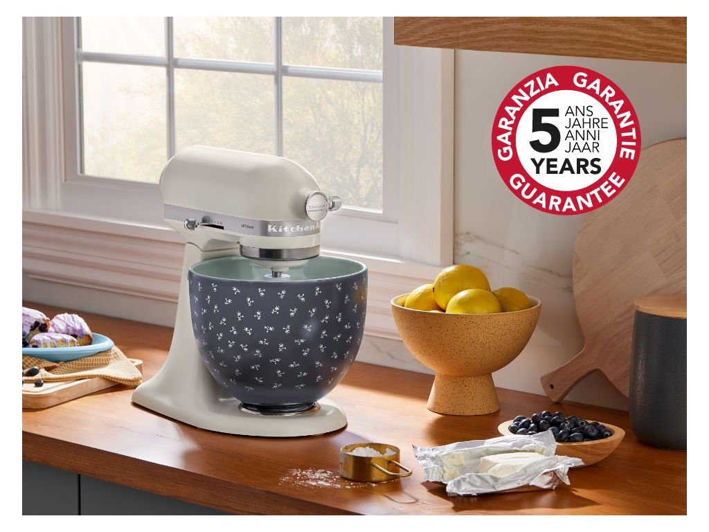 Dekor Vintage Florals je inspirován jemným květinovým motivem v modrých odstínech, který dodává míse nadčasový vzhled. Díky tomuto designu může být mísa nejen pracovním nástrojem při přípravě surovin, ale také estetickým doplňkem, který podtrhne charakter ikonického robota KitchenAid.