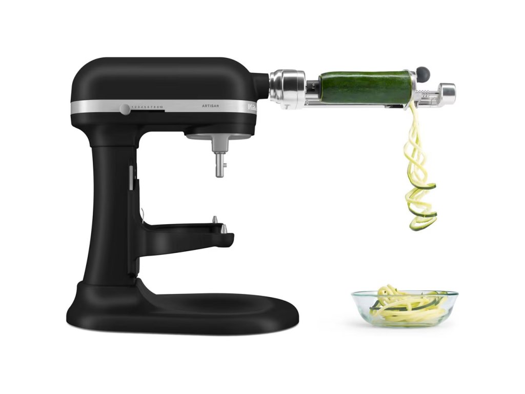 Pomocí volitelného příslušenství proměníte KitchenAid v multifunkční centrum: mlýnek na maso, nástavce na těstoviny, kráječ/zpracování zeleniny či zmrzlinovač. Vše se připojuje na univerzální hřídel v přední části.