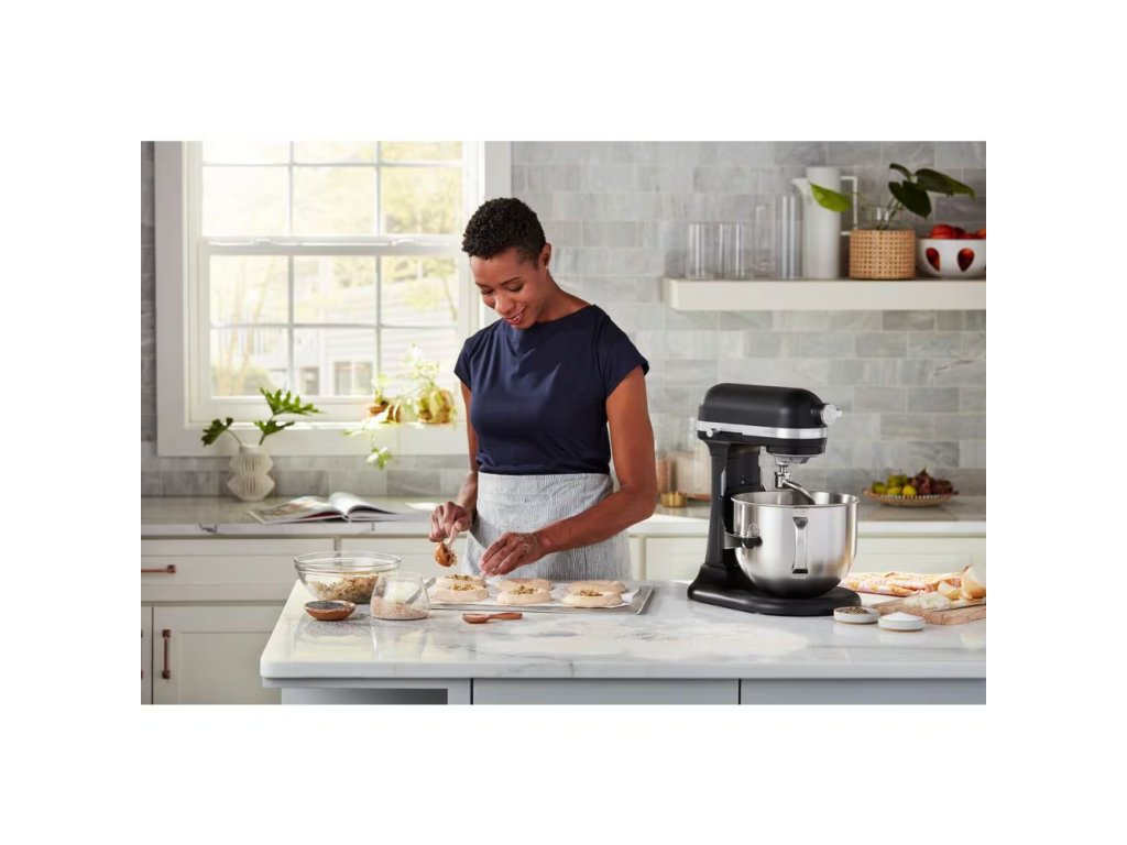 Ergonomická nerezová mísa 6,6 l umožní zpracovat velké dávky: až 3,8 kg chlebového těsta nebo vyšlehat 16 bílků najednou. Zvedací mechanismus mísy poskytuje maximální kontrolu a stabilitu při práci.