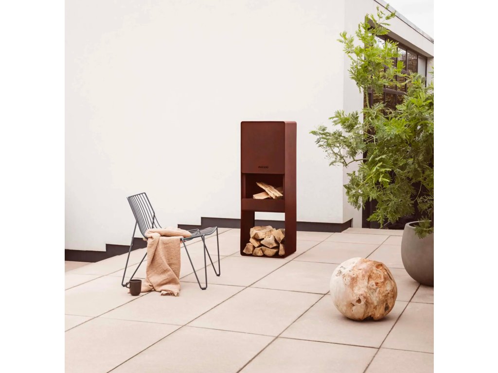 Eva Solo FireBox je víc než jen venkovní krb. Je to designový objekt, který spojuje krásu otevřeného ohně s nadčasovým dánským designem. Vyroben z cortenové oceli, která s časem získává unikátní ochrannou patinu, nabízí nejen výjimečný vizuální dojem, ale i praktickou funkci – silné sálavé teplo, chytré detaily a nulovou potřebu údržby.