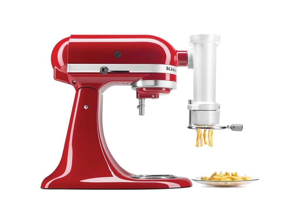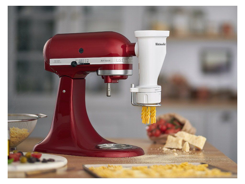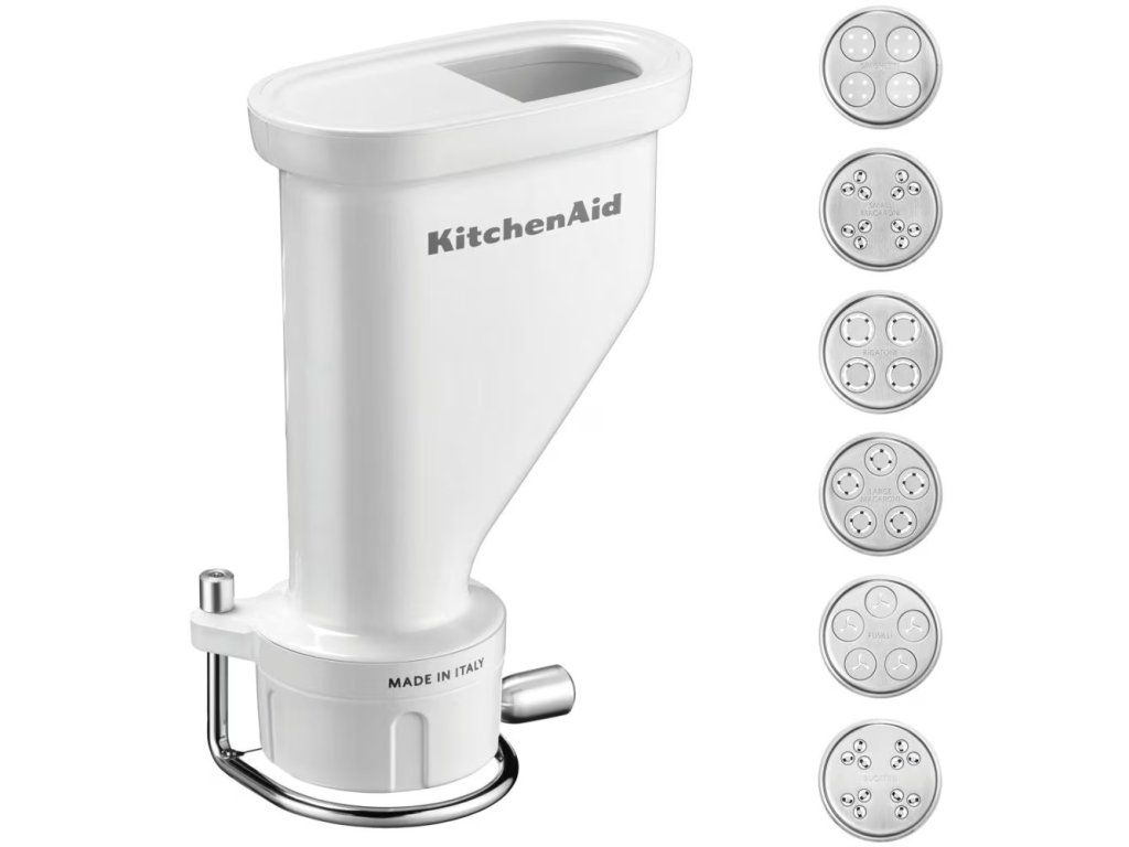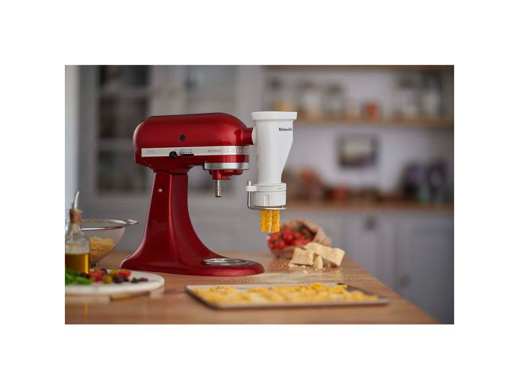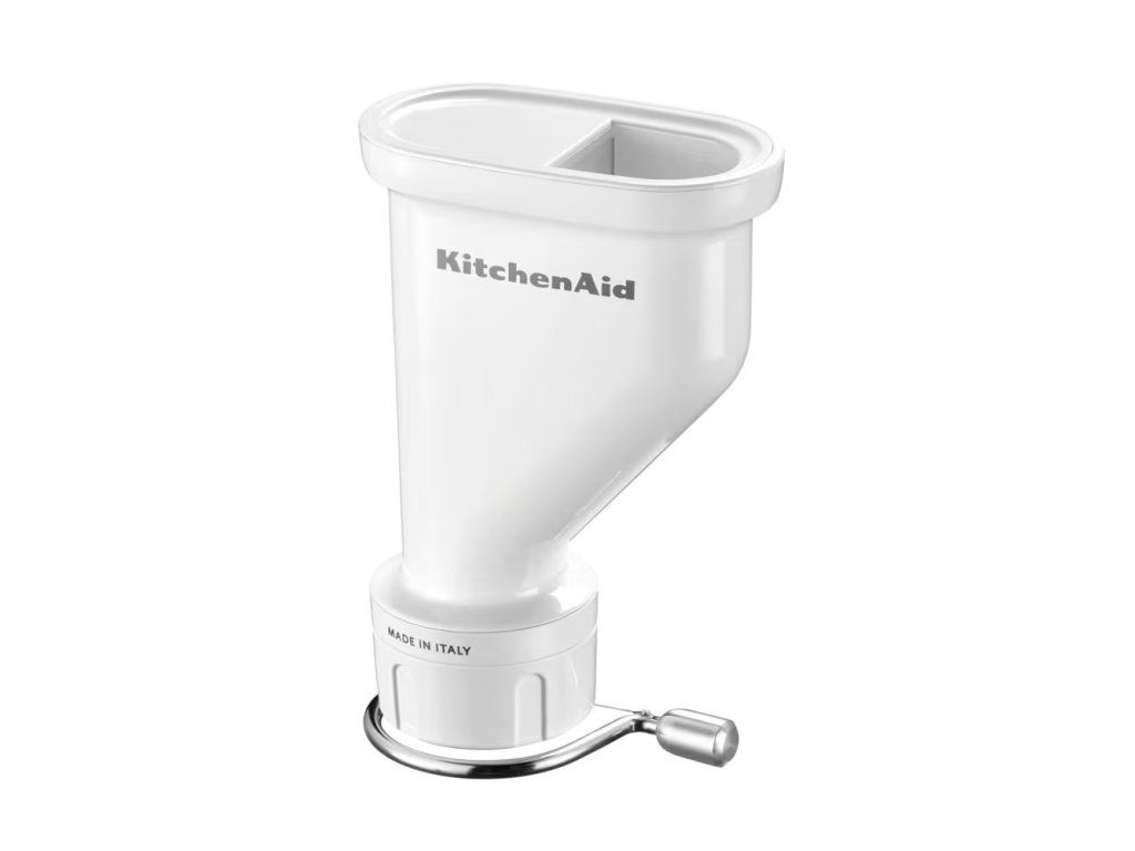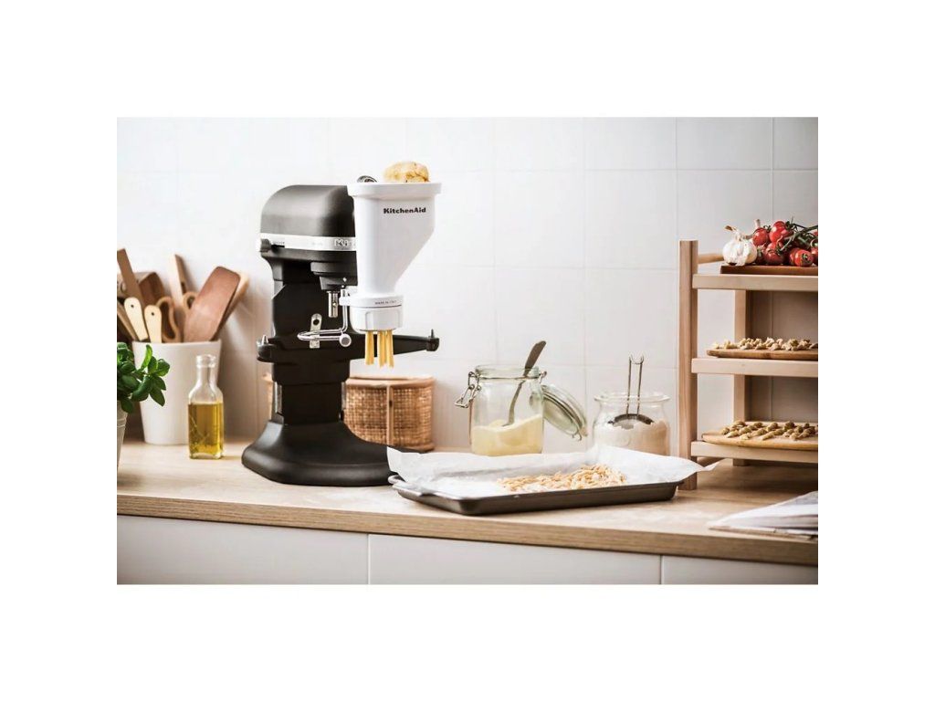 Nástavec KitchenAid 5KSMPEXTA je určen pro milovníky domácí pasty, kteří chtějí připravovat autentické italské těstoviny přímo ve své kuchyni. Po připojení k multifunkčnímu výstupu kuchyňského robotu KitchenAid využívá jeho motor k lisování těsta skrze vyměnitelné matrice a umožňuje tak jednoduchou výrobu čerstvých těstovin různých tvarů.