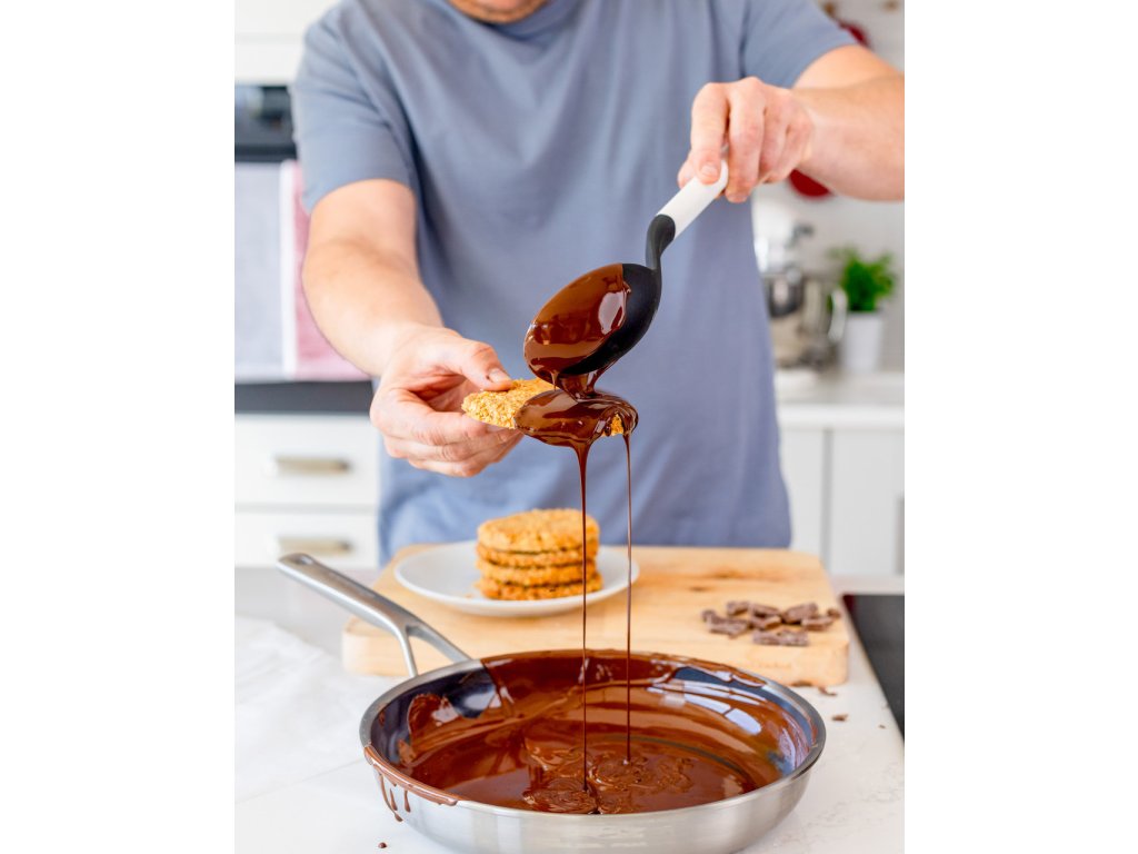 Pracovní část je odolná a robustní, takže při míchání hustších směsí neuhne a zůstává stabilní. Lžíce je navržena tak, aby dobře doplnila další náčiní z řady KitchenAid Classic Collection – její elegantní porcelánově bílá rukojeť ladí se světlými kuchyňskými doplňky a výbavou.