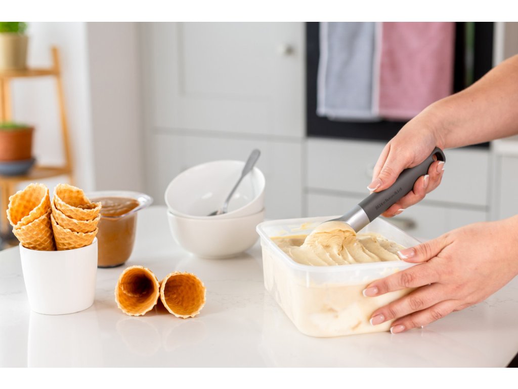 Lžíce na zmrzlinu KitchenAid v uhlově šedé barvě je navržena pro pohodlné a přesné porcování mražených dezertů. Pevná konstrukce umožňuje snadnou práci i se zmrzlinou skladovanou při nižších teplotách.