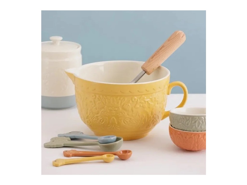 Tato mísa s uchem z kolekce Home To Roost spojuje praktičnost a dekorativní vzhled. S objemem 2,3 l nabídne dost prostoru pro přípravu těsta, směsí nebo omáček. Žluté provedení a jemný reliéf s motivem kohouta a slepičky vnáší rustikální kouzlo do každé domácnosti.