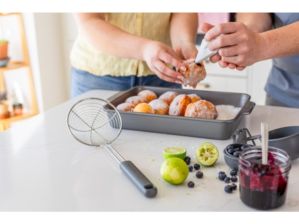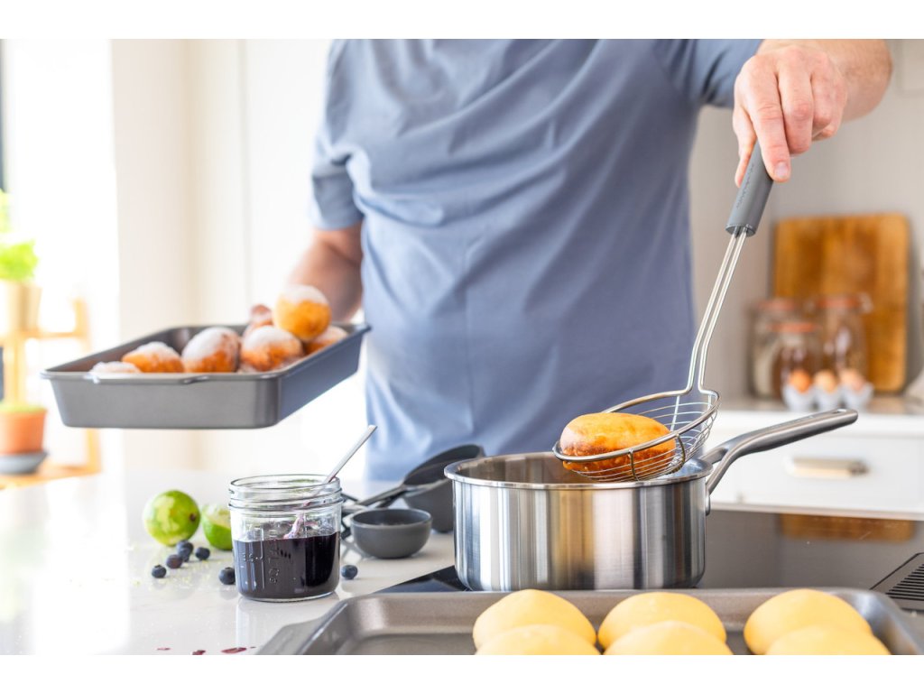 Drátěná naběračka KitchenAid snadno nabírá noky, smažené koblihy, knedlíky... Mimořádně široký koš 14 cm z nerezové...