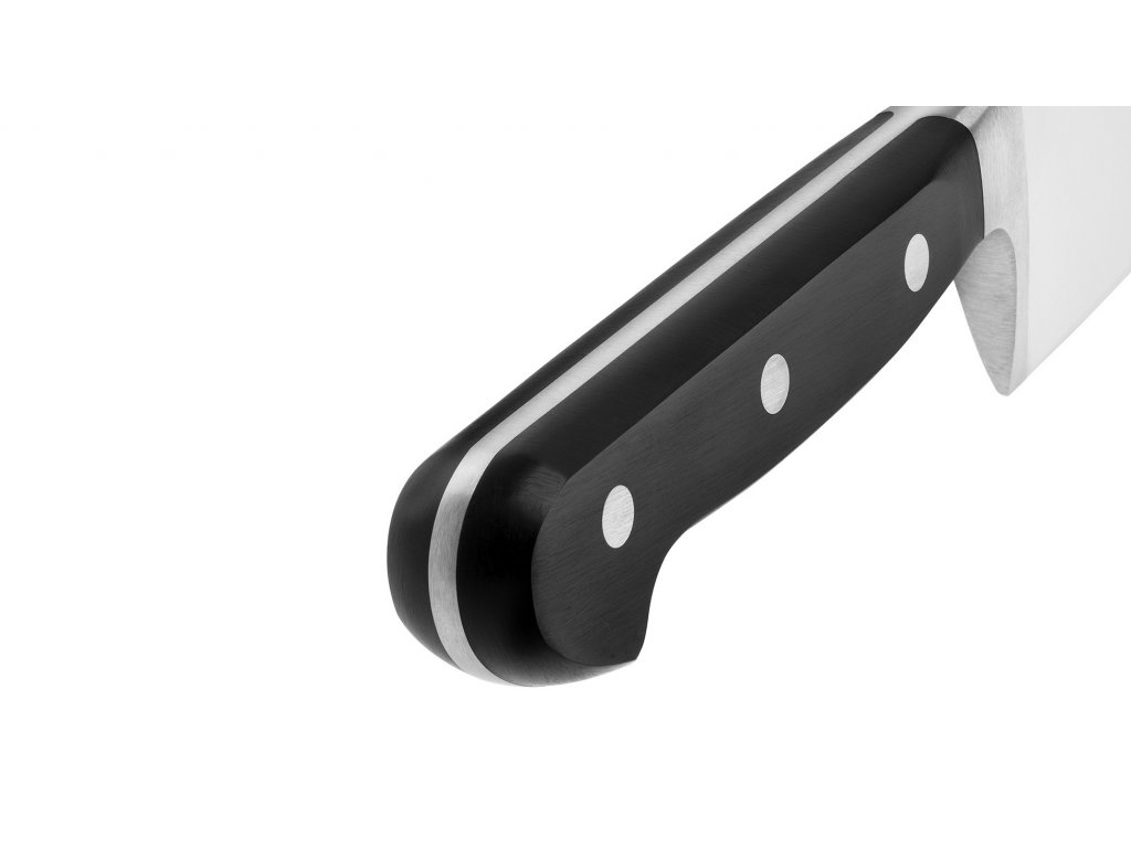 Profesionální kuchaři (i šéfkuchaři) si oblíbili osvědčenou řadu nožů Professional "S". Jejich důvěru si získala bezchybnou kvalitou a dnes již tradičním designem nožů s plnou střenkou se 3mi robustními nýty. Nože jsou vykovány z jediného kusu oceli bez svárů či spojů. Jsou dokonale vyvážené a práce s nimi je snadná a bezpečná.