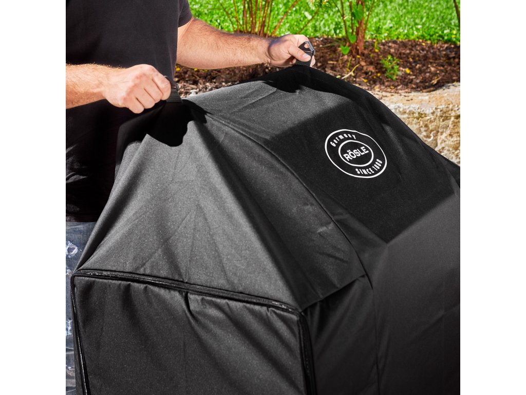 Chcete mít gril připravený k použití v perfektním stavu po celý rok? Tento odolný obal na gril od značky Rösle poskytuje spolehlivou ochranu před deštěm, UV zářením, prachem i pylem. Je navržen přesně pro modely VIDERO G4 / G4-S a ALLFLAME Hero 4, takže skvěle sedí a zároveň se snadno nasazuje i sundává.