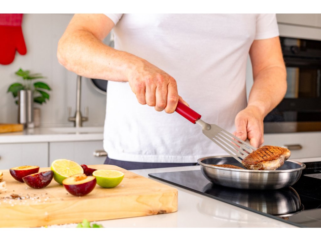 Ergonomicky tvarovaná rukojeť v červené barvě Empire Red poskytuje pevný úchop a pohodlí i při delším vaření. Díky své délce je obracečka vhodná pro širokou škálu pokrmů – od masa a zeleniny až po delikatesní směsi, které vyžadují přesné ovládání.