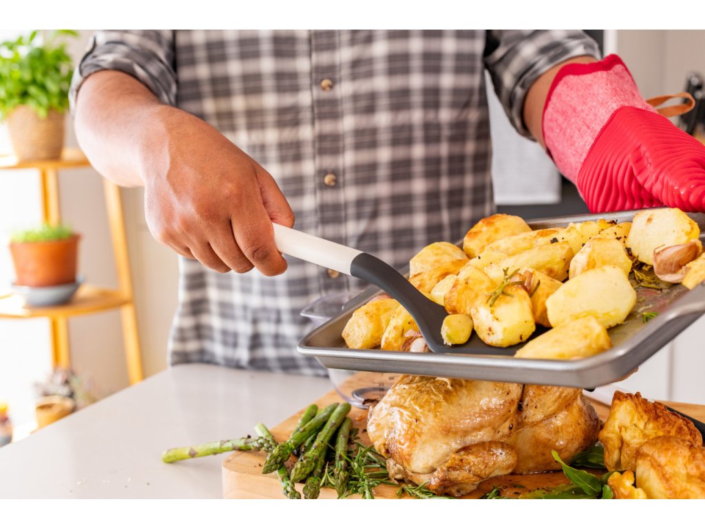 Díky hladkému povrchu se obracečka snadno čistí. Po použití ji můžete opláchnout pod teplou vodou nebo vložit do myčky nádobí bez obav o funkčnost nebo vzhled.