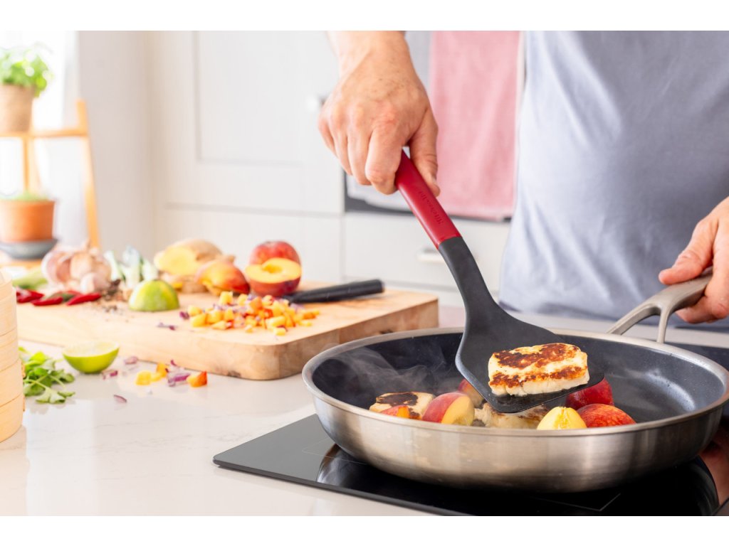 Pracovní část je pevná a odolná vůči teplu, takže ji můžeš bez obav používat jak při běžném vaření, tak při grilování na plotně nebo venku. Ergonomická rukojeť v červené barvě Empire Red zajišťuje jistý úchop a dodává kuchyni výrazný akcent.