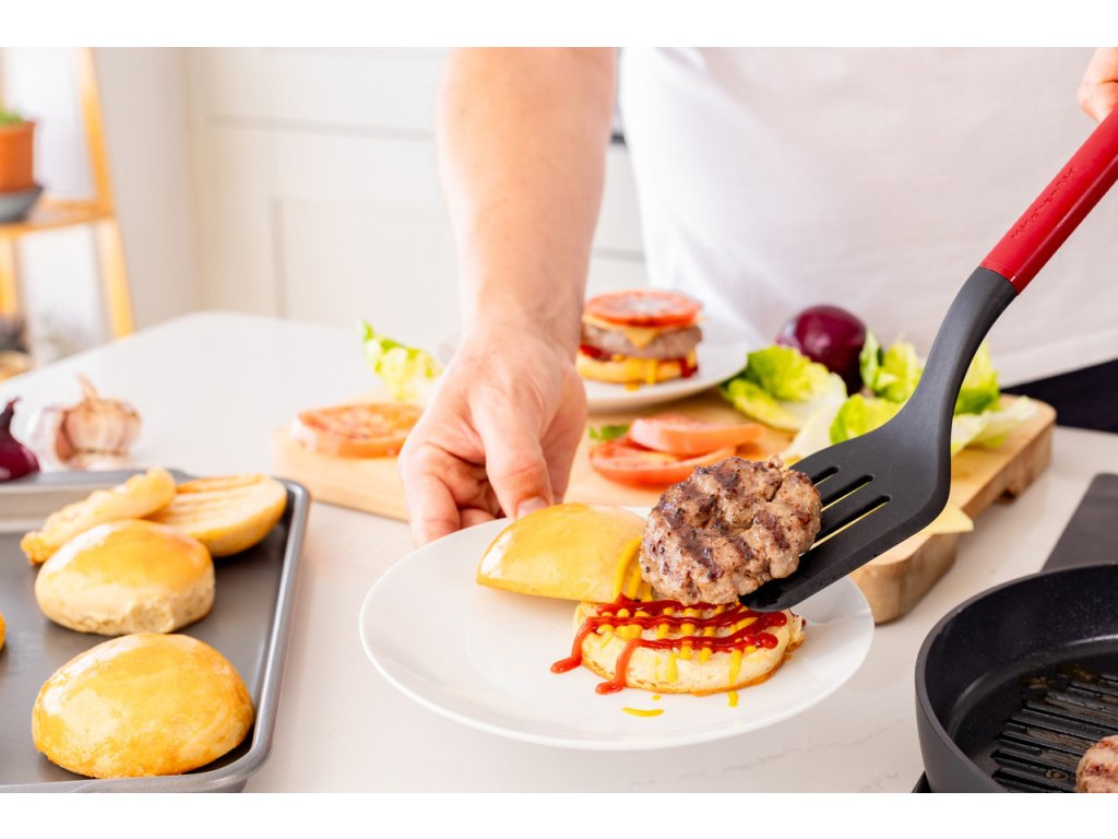 Snadné obracení hamburgerů. PROFI řada. Ideální pro obracení a zvedání z grilovací pánve nebo grilovací desky....