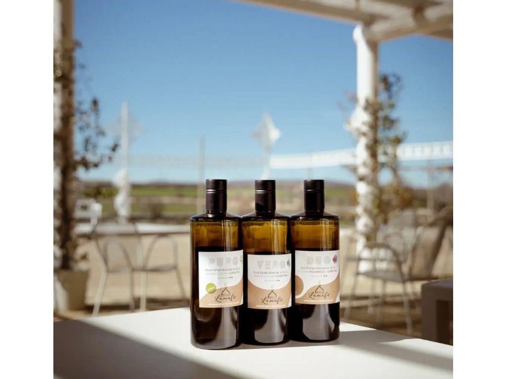 Blend odrůd Ogliarola a Coratina vzniká z kombinace dvou charakterů: Ogliarola často poskytuje olej s jemnější ovocností a měkčí strukturou, zatímco Coratina dodává strukturu a lehkou pikantnost. Výsledkem je střední intenzita, která je ideální pro ty, kteří hledají olej s vyváženým profilem bez extrémů.