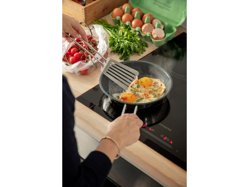 Díky kombinaci titanové struktury a hladkého povrchu se zbytky jídla snadno uvolňují. Čištění je jednoduché a pánev lze bez obav mýt i v myčce nádobí.