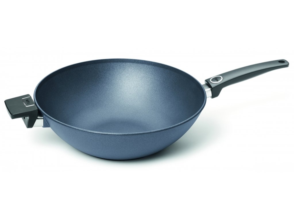 Nepřilnavá WOK pánev WOLL 34 cm DIAMOND LITE s pevnou rukojetí, nejen na asijskou kuchyni, ale také na italskou kuchyni, smažení nebo fritování. Díky revoluční technologii jsou všechny výrobky série DIAMOND LITE výrazně lehčí (až o 30%) než série NOWO TITANIUM. Pětivrstvý nepřilnavý povrch Woll Diamond Lite je zcela bez použití PFOA, svrchní vrstva povrchu je zpevněna krystaly diamantu pro maximální trvanlivost a otěruvzdornost.