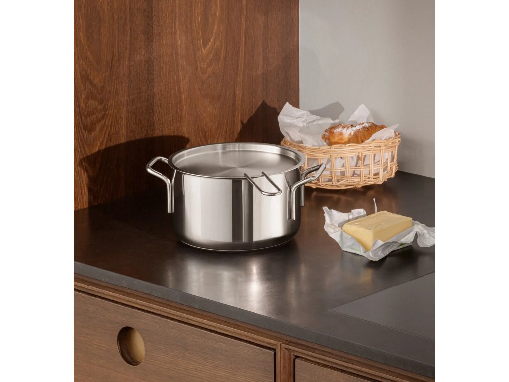 Poklice Eva Trio o průměru 16 cm spojuje nadčasovou jednoduchost s promyšlenou funkčností, která usnadňuje každodenní vaření. Dlouhá rukojeť umožňuje poklici bezpečně nadzvednout a zkontrolovat pokrm bez rizika opaření unikající párou. Díky plochému profilu lze poklici zároveň využít jako odkládací plochu pro talíře nebo misky, aby zůstaly během vaření teplé.