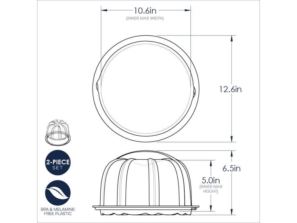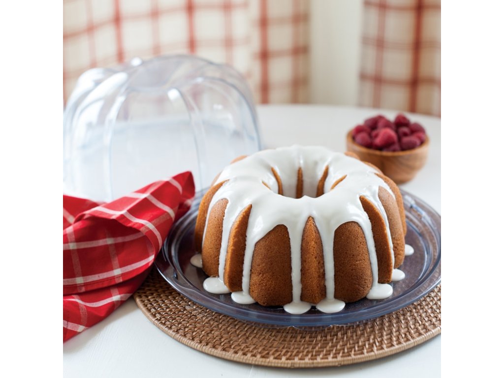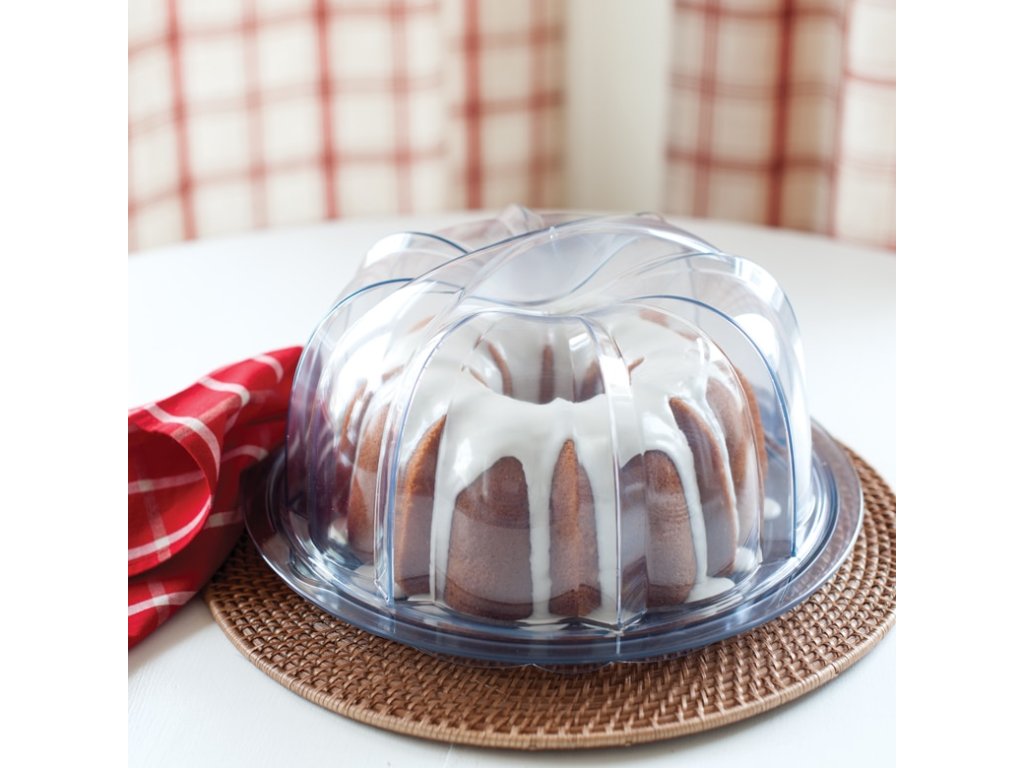 Podnos s poklopem Nordic Ware Deluxe je navržen pro uchování a bezpečné přenášení bábovek, dortů a dalších moučníků. Pevný průhledný kryt chrání pečivo před vysycháním, prachem i mechanickým poškozením během převozu nebo skladování.
