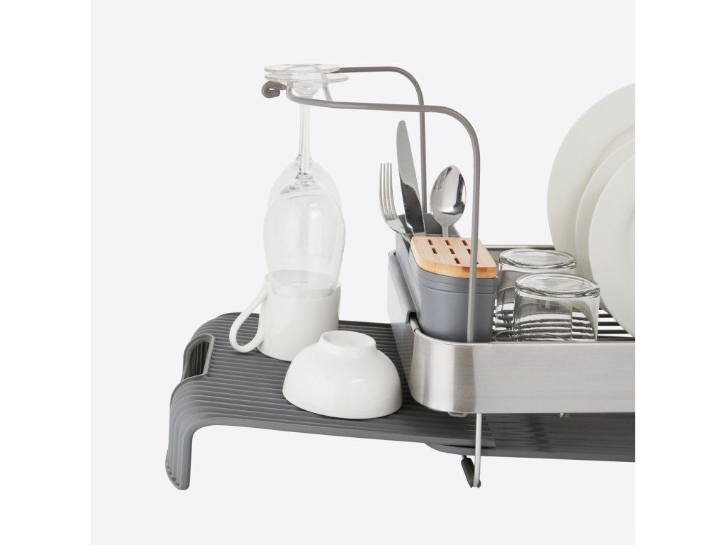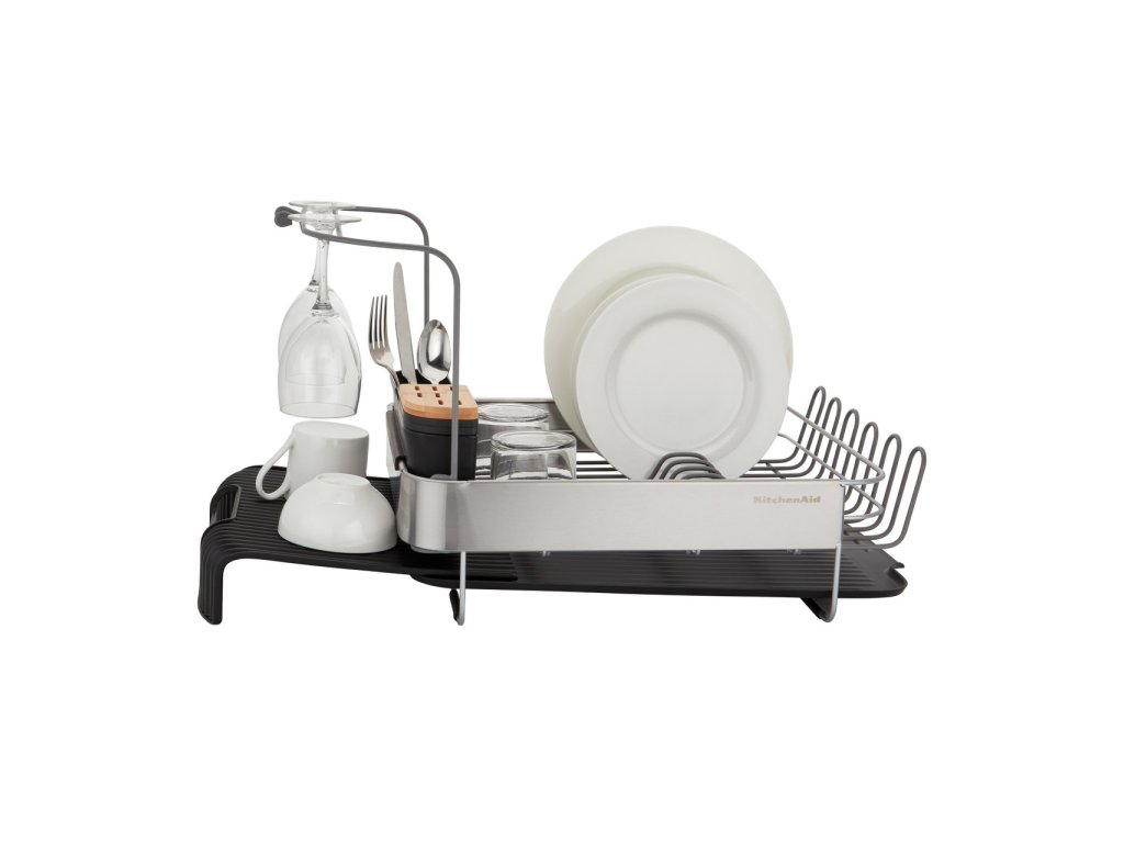 Rozkládací odkapávač na nádobí KitchenAid, s nástavcem na sklenice, šedý