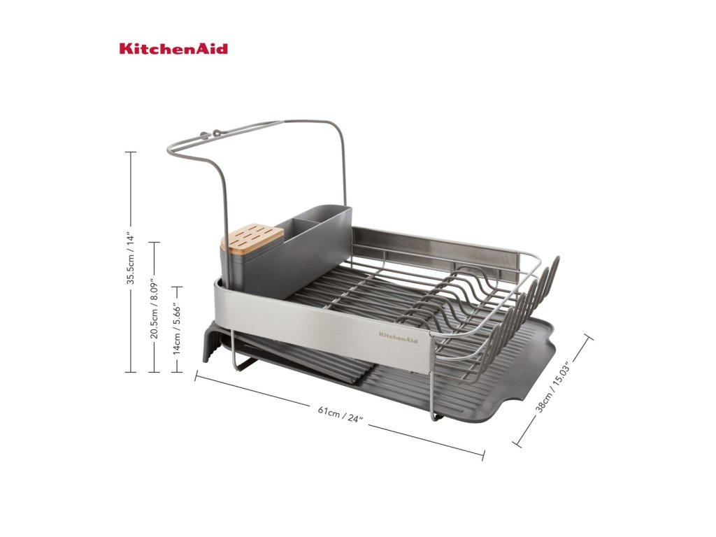 Rozšiřitelný odkapávač nádobí KitchenAid je navržen pro kuchyně, kde se klade důraz na pořádek, funkčnost a dlouhodobou kvalitu. Nabízí praktický prostor pro sušení běžného denního nádobí a zároveň zachovává čistý a kultivovaný vzhled pracovní plochy. Díky možnosti rozšíření lze odkapávač používat v kompaktní podobě při menším množství nádobí, nebo jej snadno zvětšit ve chvíli, kdy je potřeba více místa.