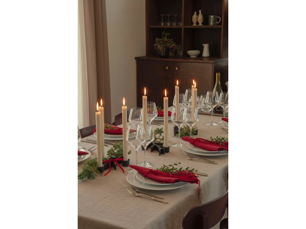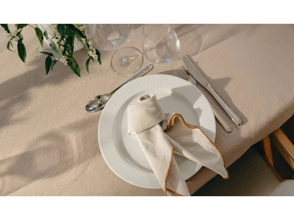 Design navazuje na ikonickou kolekci Legio Nova, pro kterou jsou typické jemné drážky a čisté linie. Tento motiv je citlivě zopakován i na rukojetích příborů, což vytváří vizuálně sjednocený a sofistikovaný dojem celé tabule.