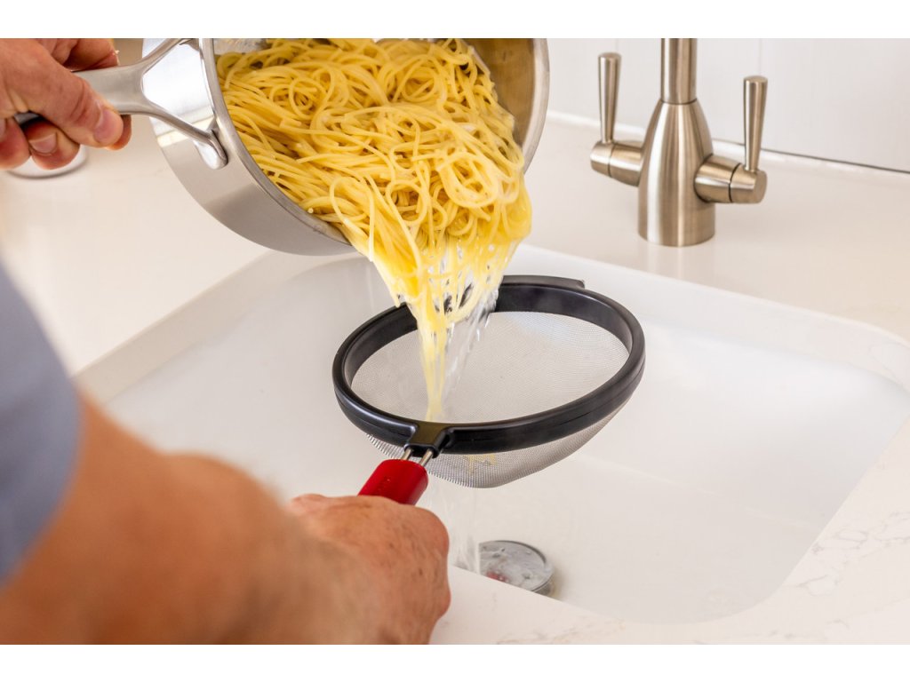 Sítko je možné snadno umýt pod teplou vodou nebo vložit do myčky nádobí bez kompromisů na funkci nebo vzhled. Odolná konstrukce zajišťuje dlouhodobý výkon i při intenzivní práci v kuchyni.
