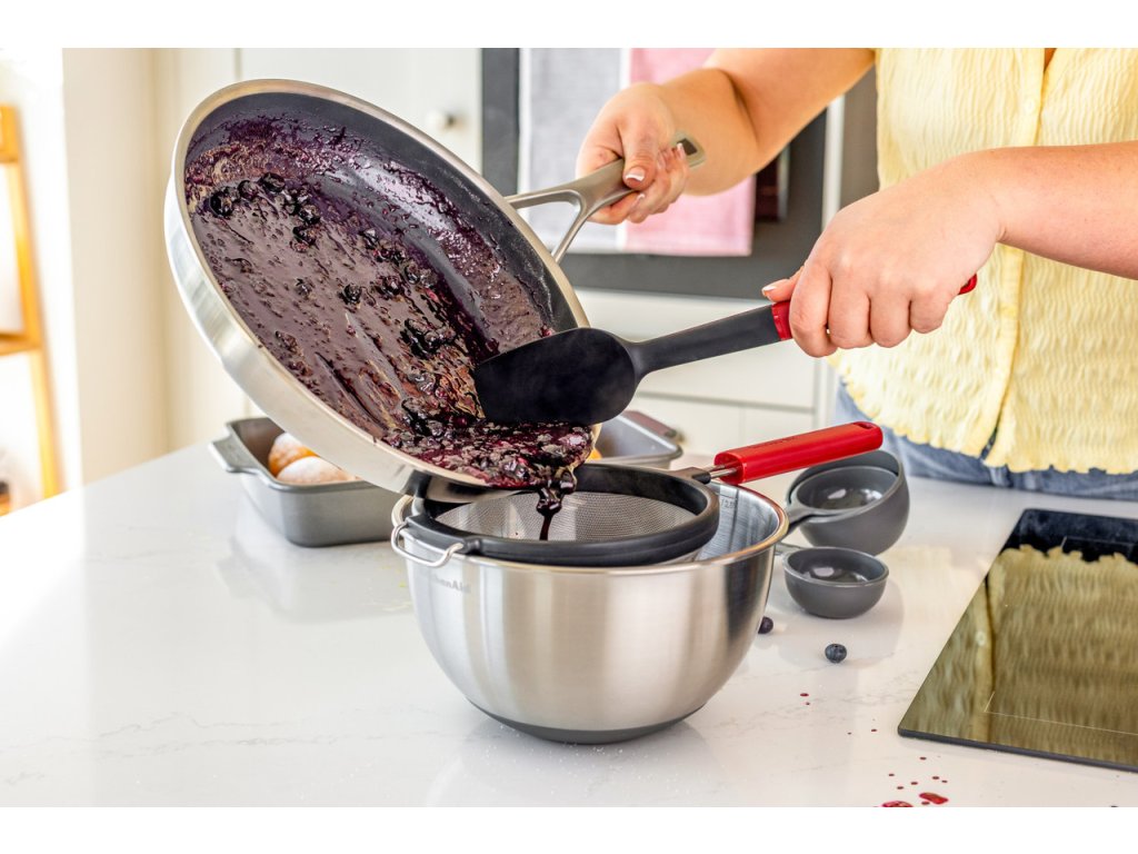 Červené jemné sítko KitchenAid 17 cm je všestranný nástroj pro prosévání ingrediencí při pečení i vaření. Jemná síť umožňuje efektivní oddělení hrudek a nežádoucích částic při práci s moukou, cukrem, kořením nebo tekutinami, čímž pomáhá dosahovat hladších a jednotnějších výsledků.