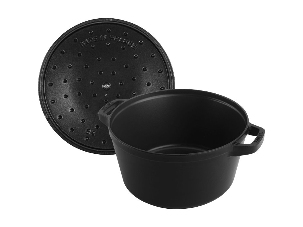 Poklice obsahuje typické picots®, malé litinové výstupky, které rozvádějí páru po celém povrchu pokrmu. Díky tomu se jídlo podlévá samo, nevysychá a chutě se postupně koncentrují. Je to technologie, kterou Staub dlouhodobě používá u svých nejlepších cocott.