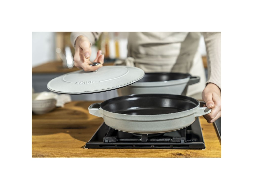 | Klíčové vlastnosti: | Sada STAUB 2+1 Ø 24 cm: litinová cocotte, pánev a poklice. Stohovatelná, vhodná na indukci i do trouby. Elegantní odstín a dlouhá životnost. |