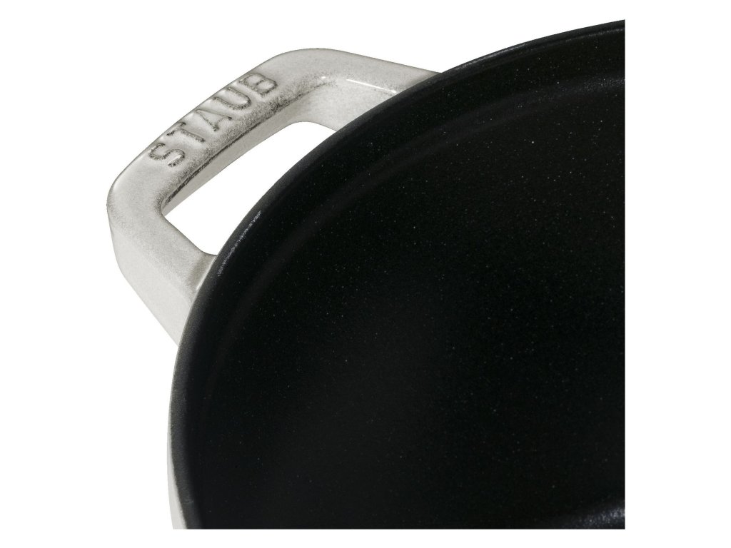 Vnitřní černý matný smalt je typickým znakem litinového nádobí Staub. Je navržen pro restování, karamelizaci a prudké opečení, přičemž při dlouhém dušení postupně uvolňuje intenzivní chuť. Vyznačuje se vysokou odolností proti poškrábání a je vhodný pro každodenní používání.
