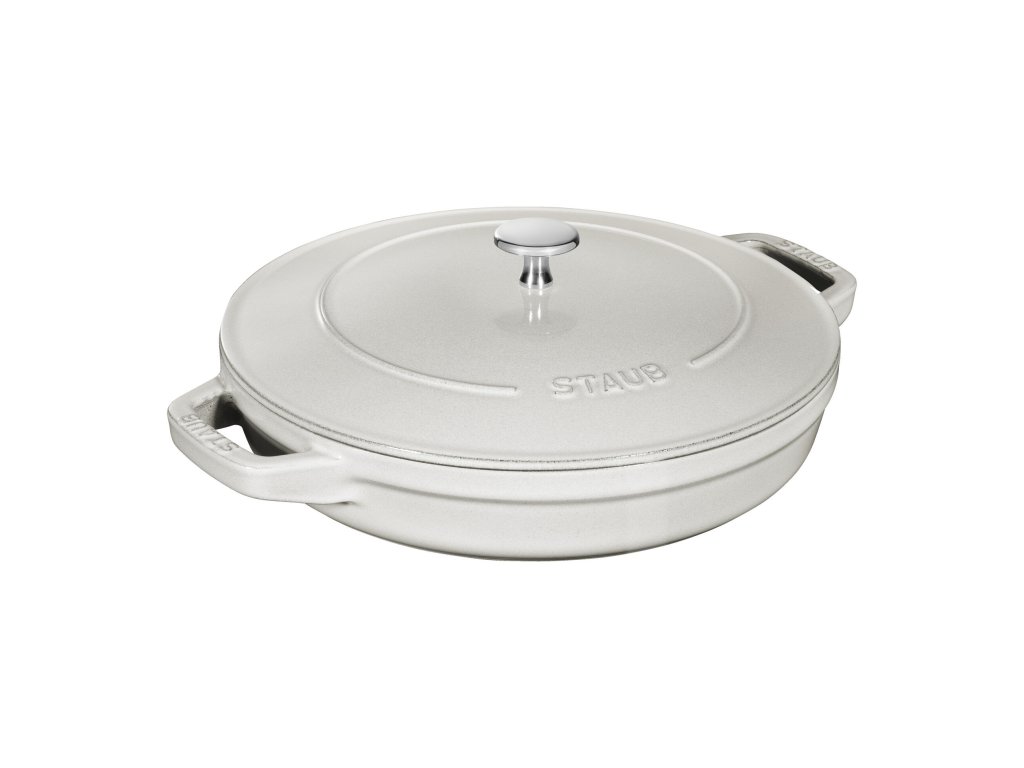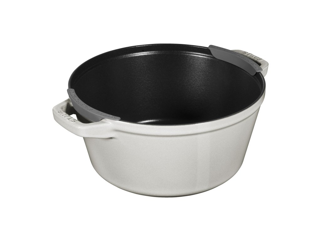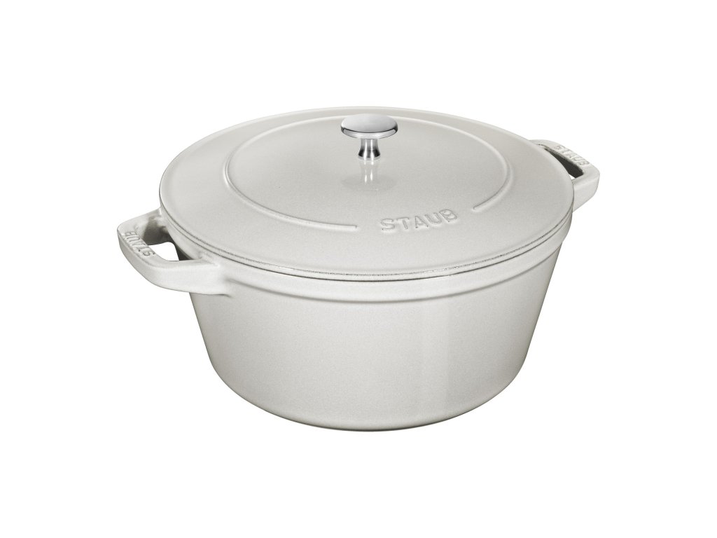 Vnější povrch v odstínu Bílý lanýž patří k nejluxusnějším glazurám ve světě Staub. Jemný tón dokonale ladí s moderními kuchyněmi a zároveň působí elegantně při servírování přímo na stůl. Smalt je vysoce odolný, barevně stálý a snadno se čistí.