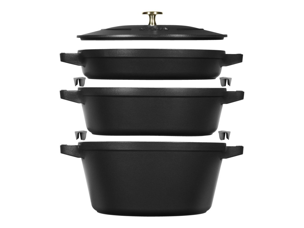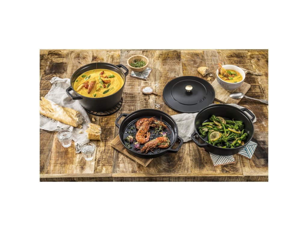 Litinový hrnec, kastrol a pánev STAUB s poklicí, sada 3v1 Ø 24 cm černá