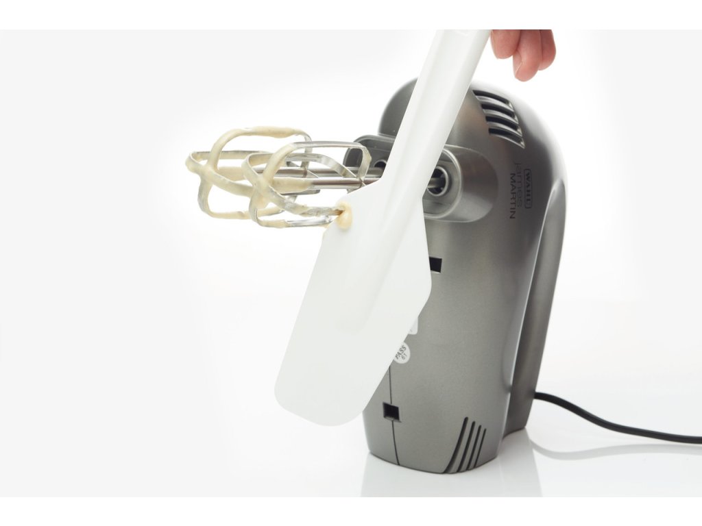 Jednou z největších výhod této stěrky je její schopnost stírat směs přímo z míchací metly. Stačí metlu protáhnout stěrkou a směs se přirozeně stáhne zpět do mísy. To výrazně zjednodušuje práci při pečení i vaření a zároveň omezuje zbytečné ztráty surovin.