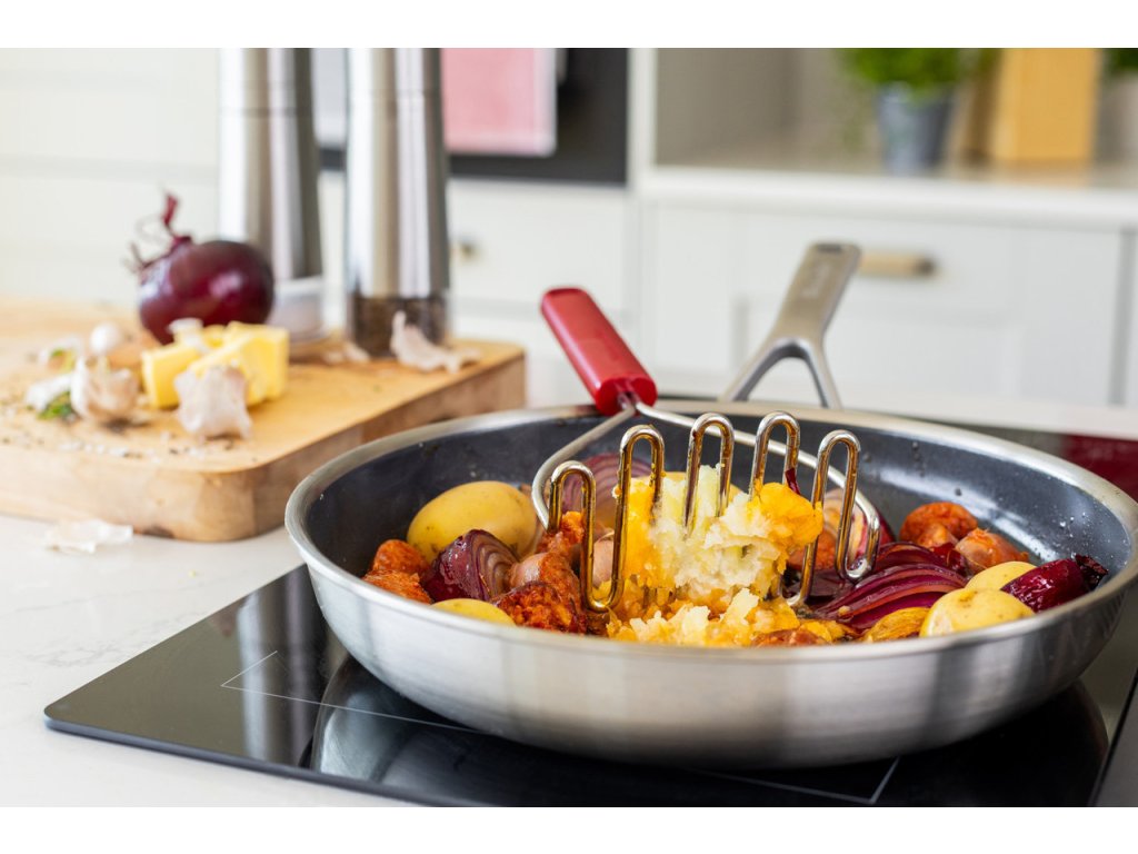 Červené šťouchadlo KitchenAid 25,5 cm v barvě Empire Red je praktický nástroj pro přípravu bramborové kaše i dalších měkkých příloh. Je navrženo tak, aby umožnilo pohodlné a rovnoměrné šťouchání bez zbytečné námahy, a ergonomická rukojeť poskytuje pevný úchop i při intenzivnější práci v kuchyni.