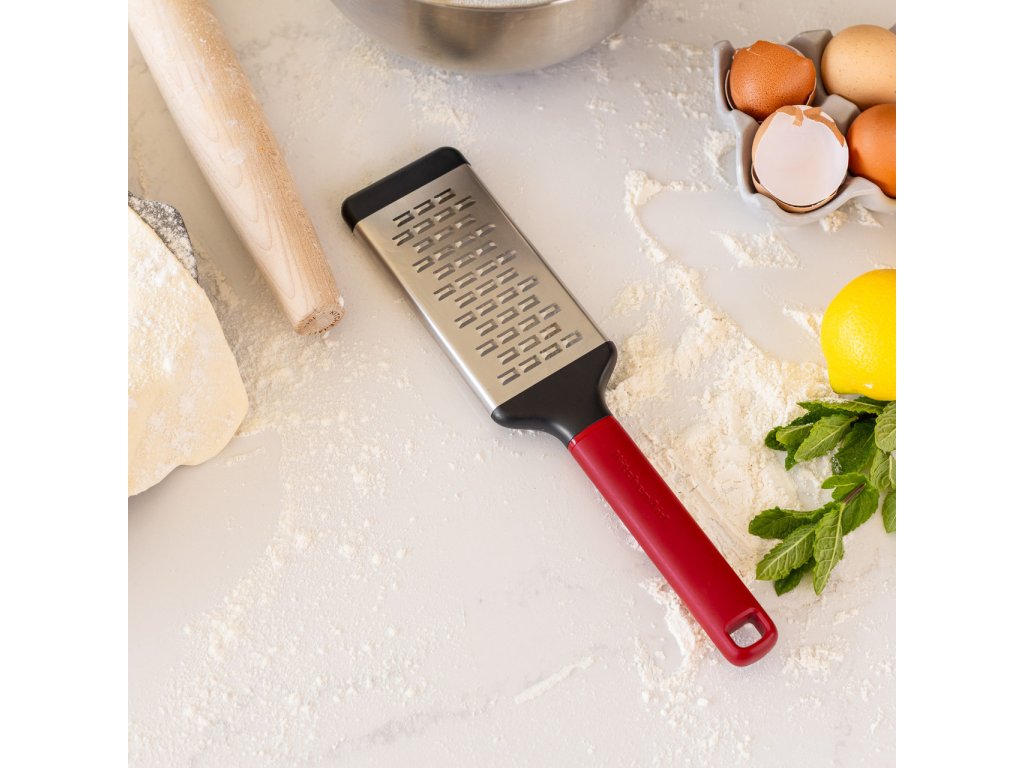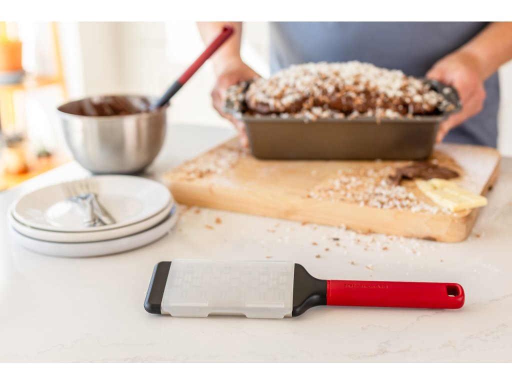 Červené jemné struhadlo KitchenAid je výkonný nástroj pro strouhání parmazánu, citrusové kůry, čokolády a dalších...