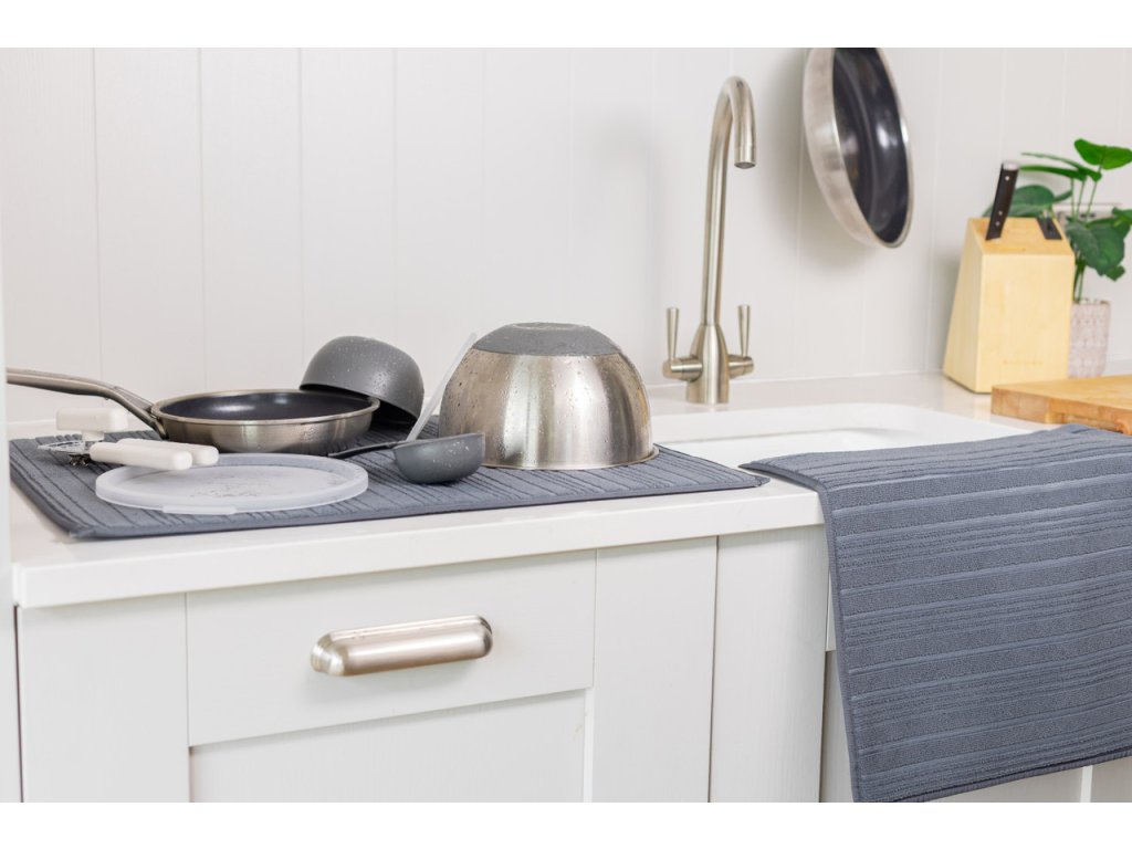 Díky své savosti rychle absorbuje vodu a udržuje okolí dřezu čisté a suché, což pomáhá předcházet vzniku skvrn na pracovních deskách a snižuje potřebu častého utírání. Podložky lze snadno složit nebo uskladnit, když nejsou používány, a jejich kompaktní design je ideální i pro menší kuchyně.