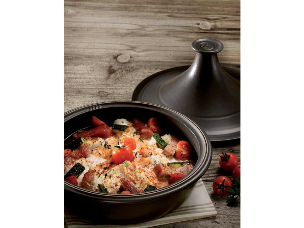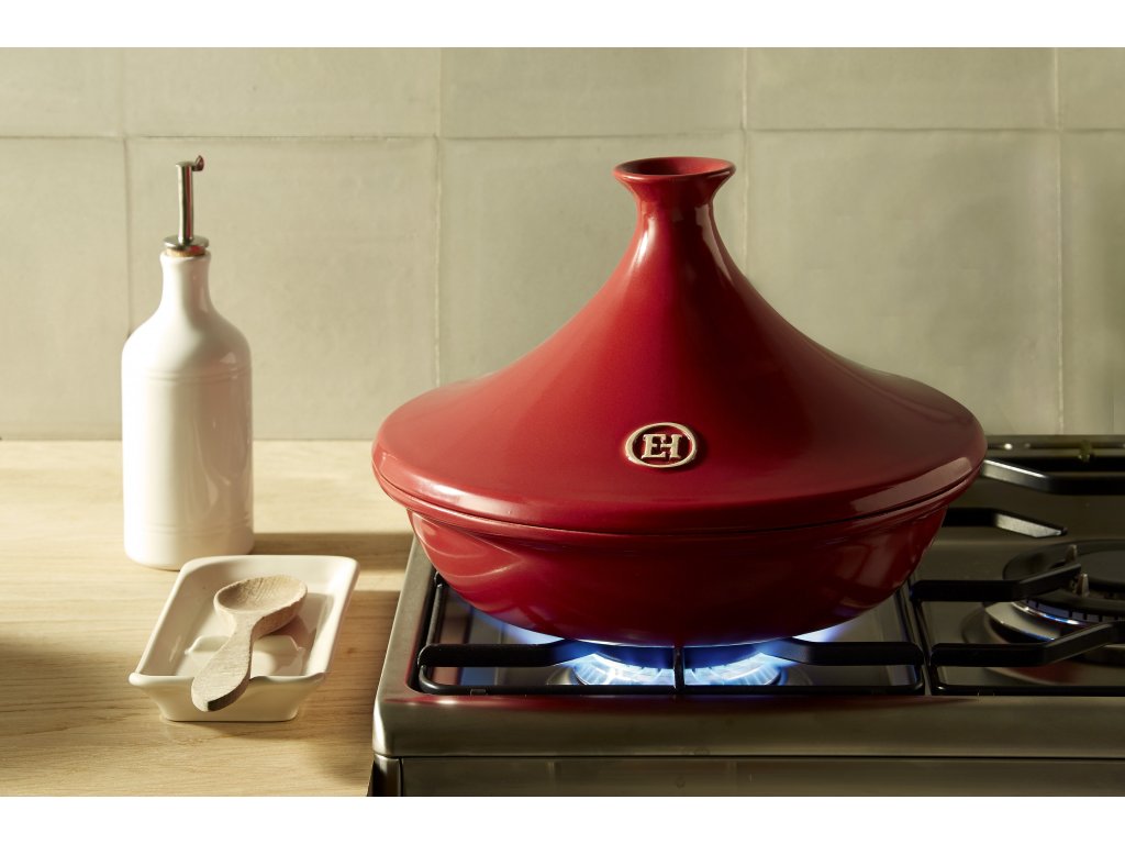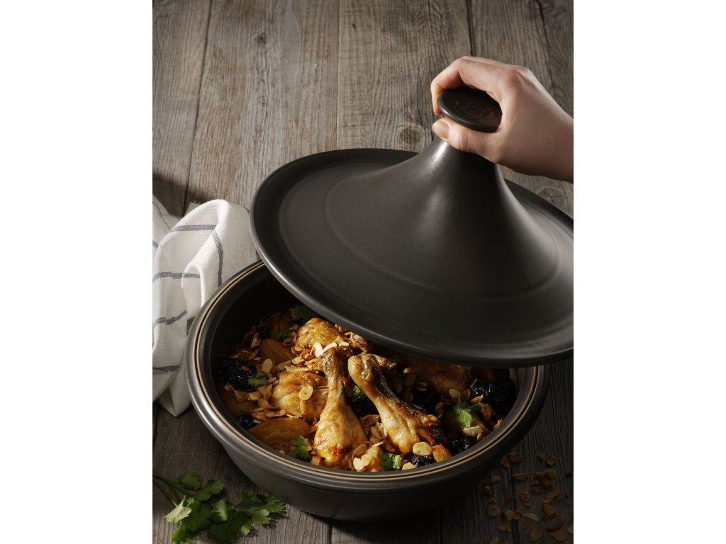 Keramický tajine vyrobený s použitím technologie Flame, která umožňuje nejen používání v troubě, ale i na klasickém sporáku. Speciální kónický tvar vrchní části je ideální pro vnitřní cirkulaci a následnou kondenzaci páry. Tajine od společnosti Emile Henry můžete použít pro vaření lahodných jídel stejného jména a dalších pomalu vařených (tažených) jídel na varné desce nebo v troubě.