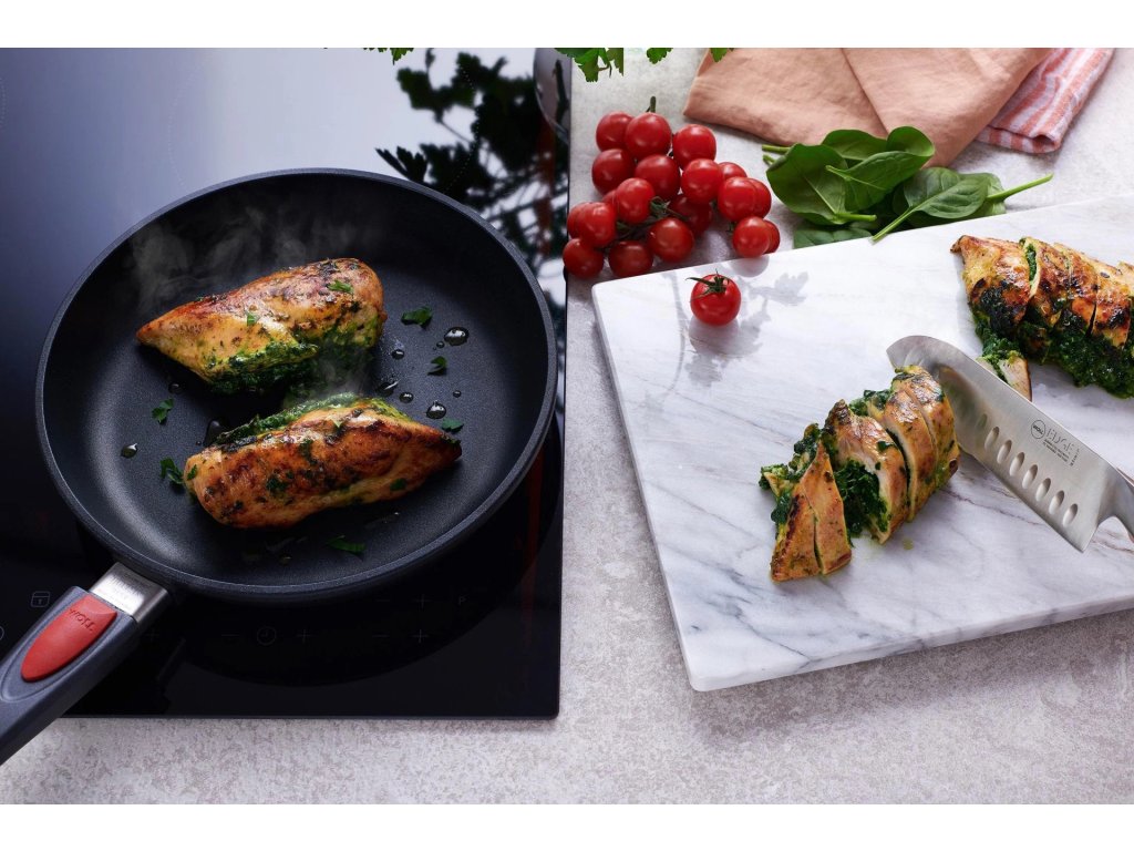 Plně indukční dno je navrženo pro rychlý a efektivní ohřev, a zároveň rovnoměrně distribuuje teplo. Pánev je vhodná pro: