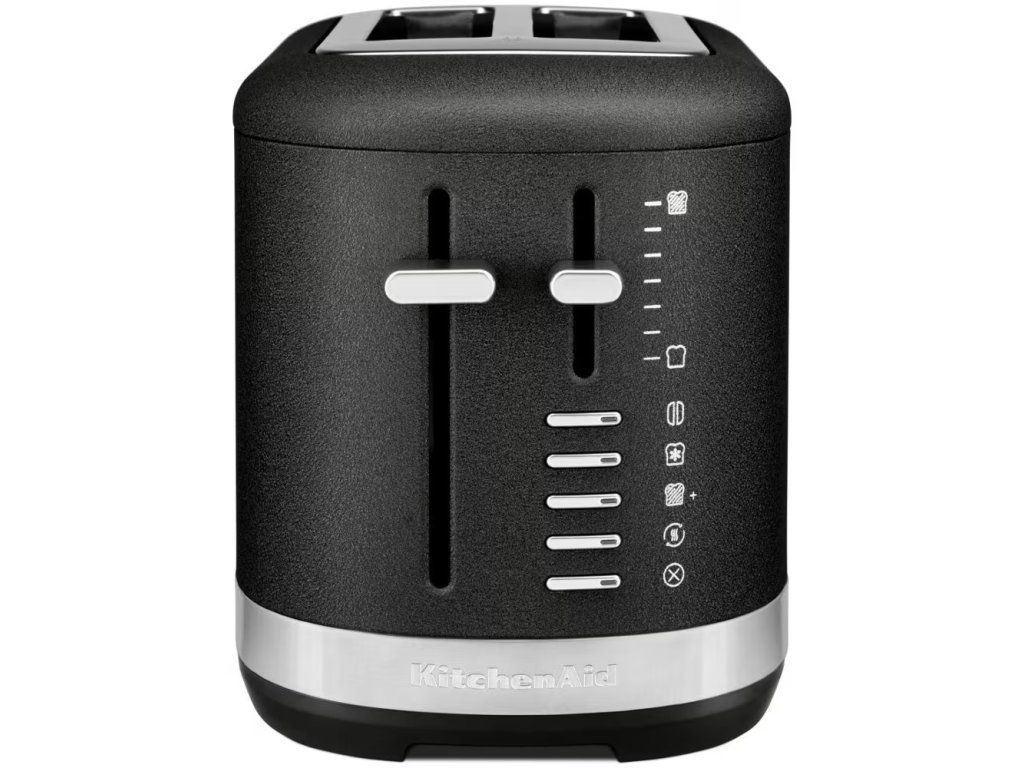 Elegantní a praktický KitchenAid toaster na 2 plátky v matné černé lehce struktirované barvě, přináší pohodlí a styl do každé kuchyně. Díky širokým slotům a pokročilým funkcím vám umožní připravit tousty přesně podle vašich představ.