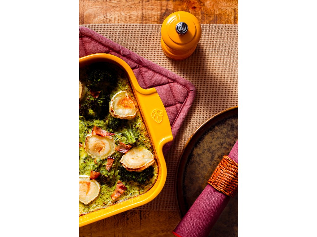 Tato prostorná zapékací mísa z kolekce Appolia v optimistické žluté barvě vnese do vaření radost a svěžest. Objem 2,7 l nabízí dostatek prostoru pro rodinné recepty i slavnostní jídla. Francouzská keramika zajistí rovnoměrné pečení a odolná glazura usnadní údržbu i servírování.