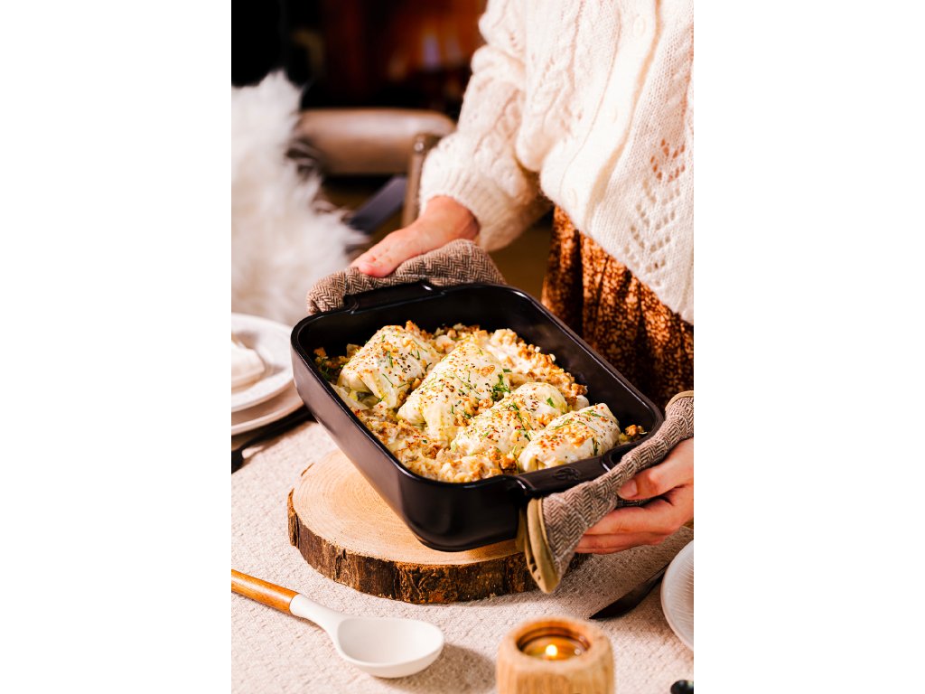 Velká zapékací mísa v elegantní černé barvě z kolekce Appolia od značky Peugeot Saveurs je dokonalým pomocníkem pro přípravu rodinných obědů i pohoštění pro přátele. Objem 3,8 l nabízí dostatek prostoru pro vydatné recepty, od lasagní přes gratiny až po pečené maso a zeleninu. Moderní vzhled navíc ozdobí i váš jídelní stůl.
