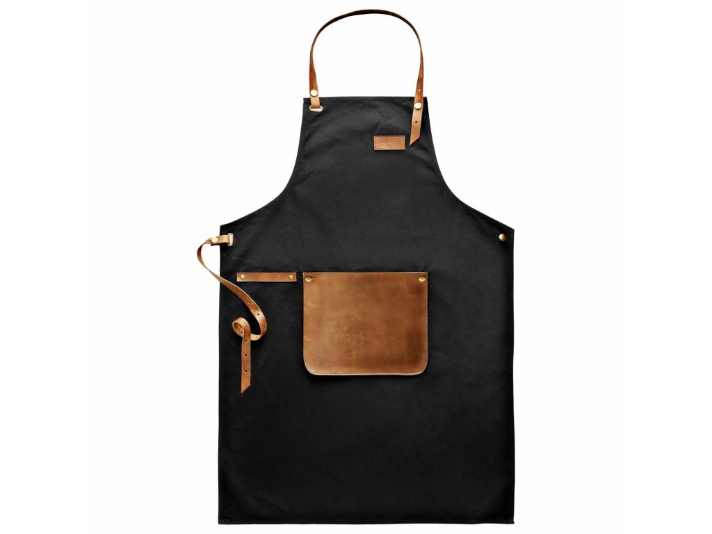 Tato zástěra kombinuje pevné plátno, kvalitní kožené detaily a promyšlené zpracování, díky kterému se hodí do každé kuchyně i na zahradu k grilu. Je vytvořena tak, aby dobře seděla, chránila oblečení a zároveň působila elegantně a nadčasově.